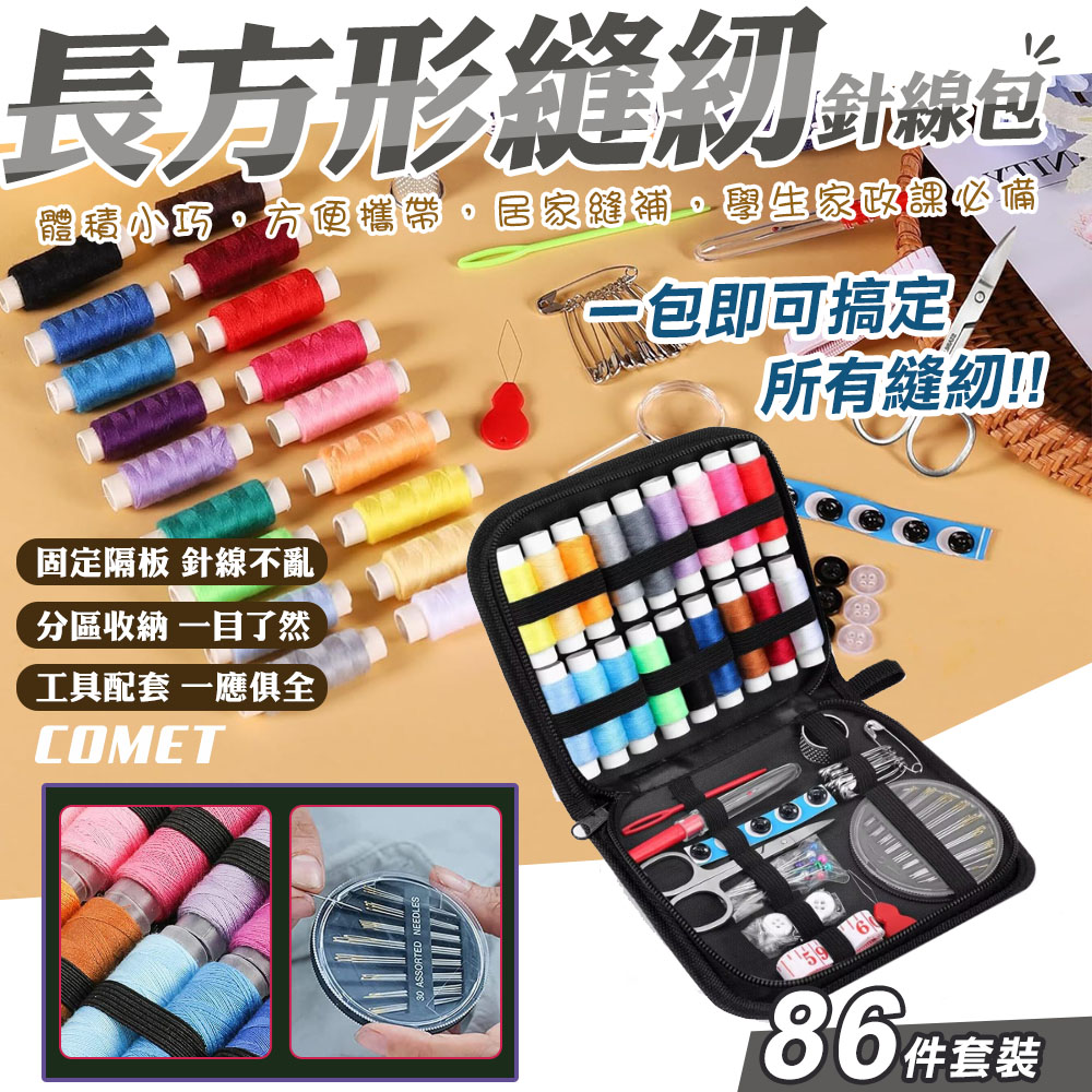 【COMET】長方形86件套裝頂針輕巧針線包(家居針線包 旅行 針線盒 縫紉工具 針線 穿針器SK-86)