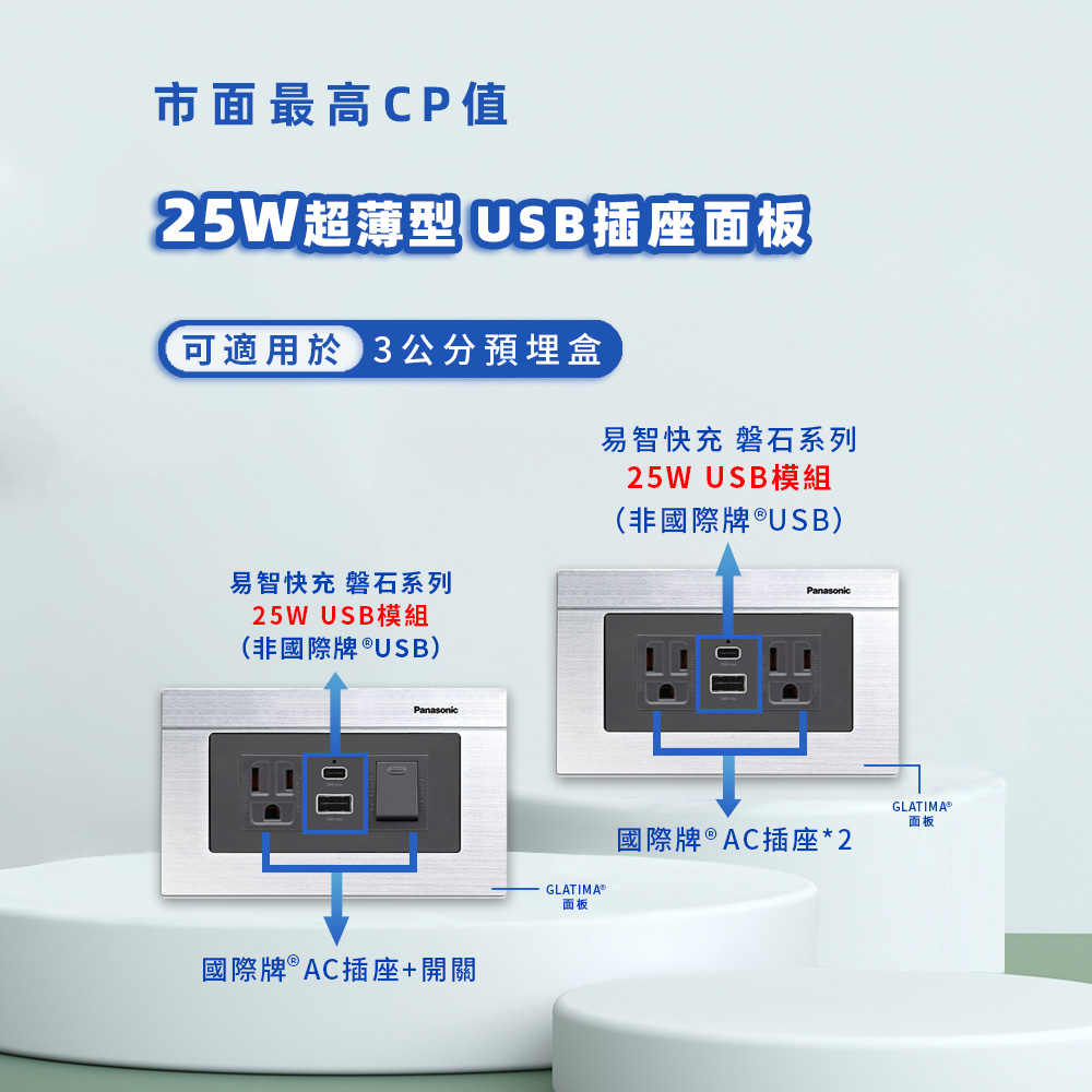 - 易智25W大功率快充;適配3公分預埋盒