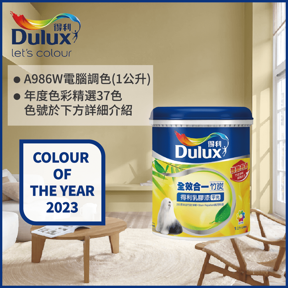 【Dulux得利塗料】A986K 全效合一竹炭乳膠漆 2023年度色系 電腦調色(1公升裝)