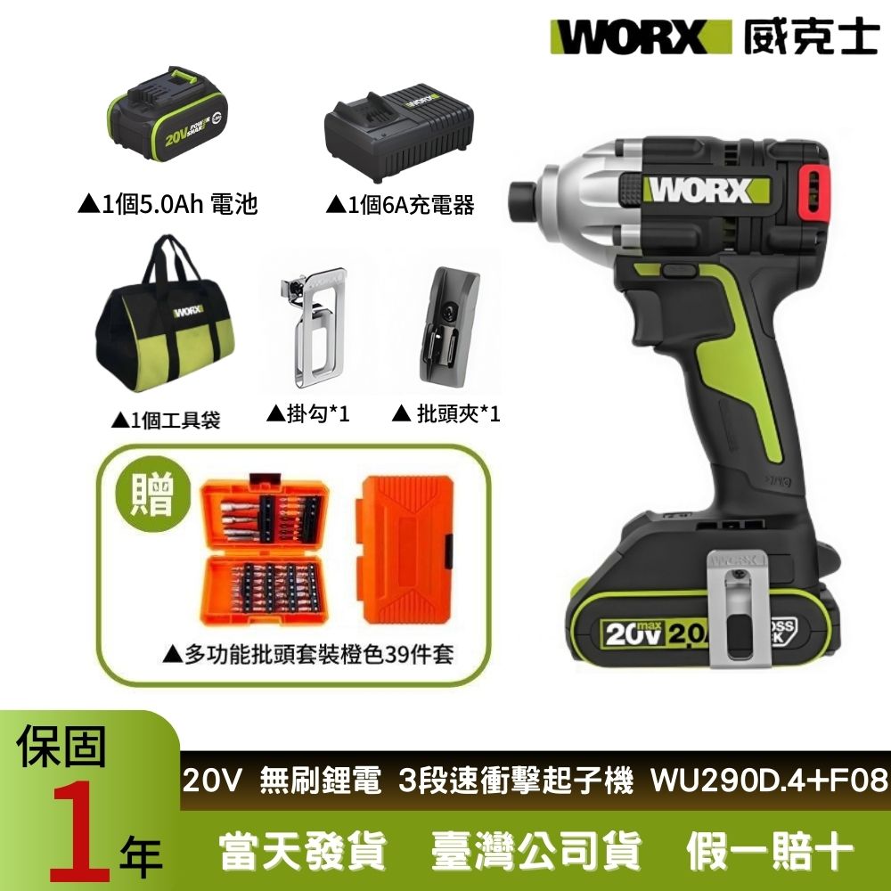 WORX威克士 20V 230Nm 無刷鋰電衝擊起子機 衝擊起子機 電動扳手 電動起子 衝擊扳手 起子機 WU290D.4+F08