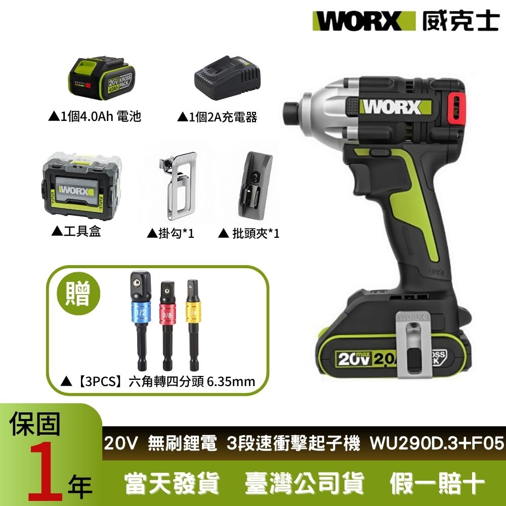 WORX威克士 20V 230Nm 無刷鋰電衝擊起子機 衝擊起子機 電動扳手 電動起子 衝擊扳手 起子機 WU290D.3+F05