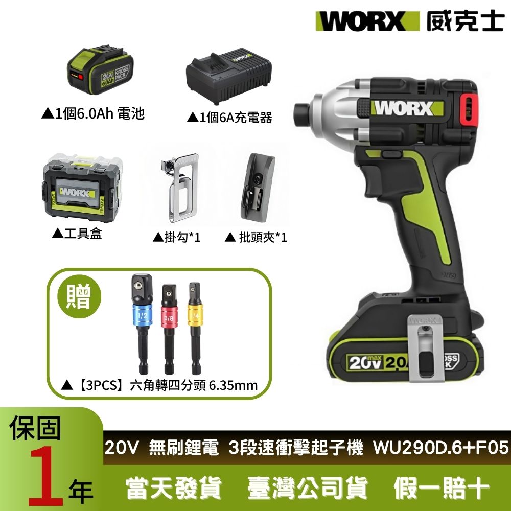 WORX威克士 20V 230Nm 無刷鋰電衝擊起子機 衝擊起子機 電動扳手 電動起子 衝擊扳手 起子機 WU290D.6+F05