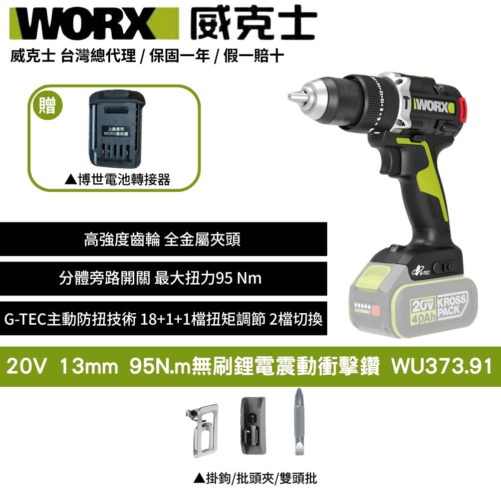 WORX威克士 20V 13mm 95N.m 電鑽 無刷 大扭力 G-tech防扭手設計 無刷鋰電震動衝擊鑽 三用震動電鑽 WU373.91+F48