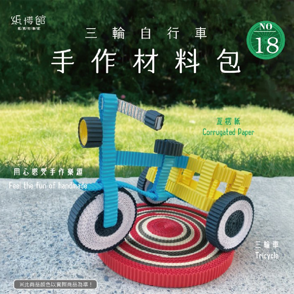 這款以紙張精巧製作的三輪自行車手作材料包,讓您輕鬆體驗摺紙樂趣。