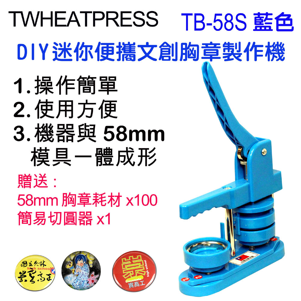 TWHEATPRESS迷你便攜DIY文創徽章機胸章機TB58S藍色送100組耗材學校活動美術手繪禮品夏令營家庭日園遊會