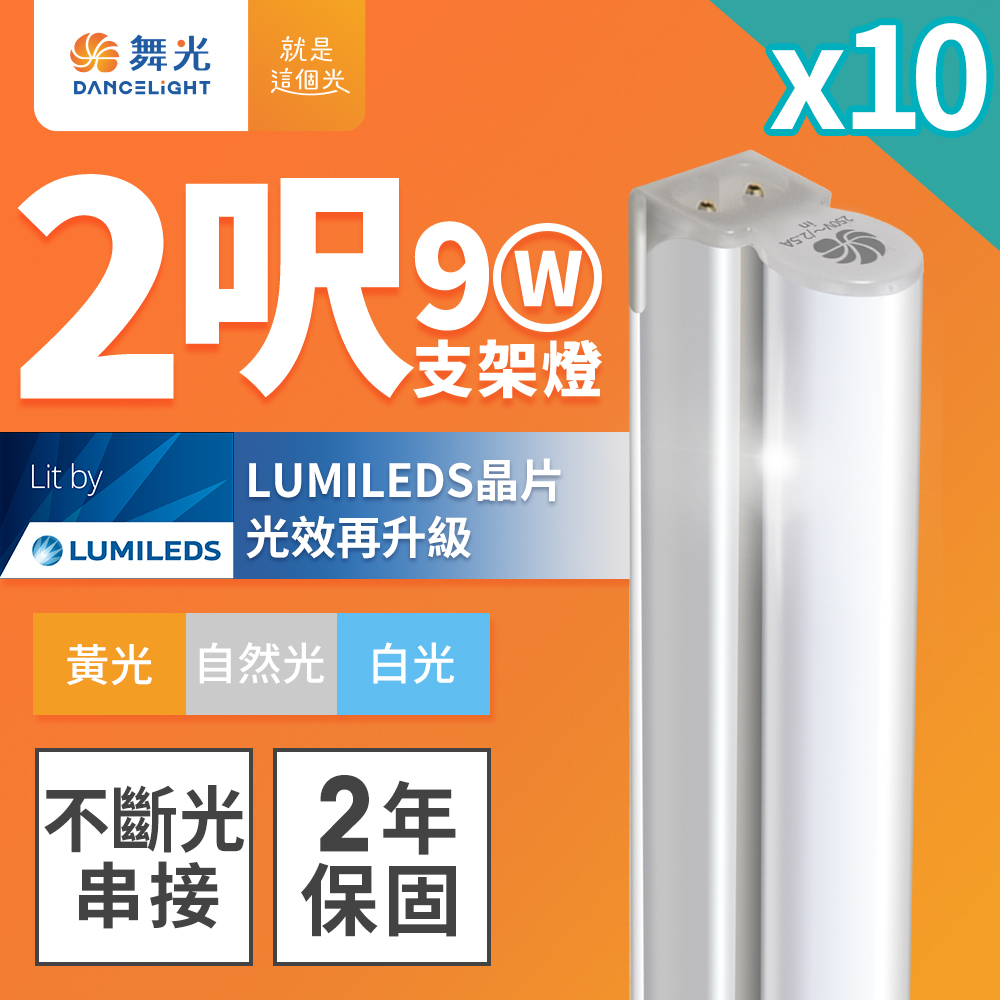 DanceLight 舞光 10入組 2呎LED支架燈 T5 9W 一體化層板燈 不斷光間接照明(白光/自然光/黃光)