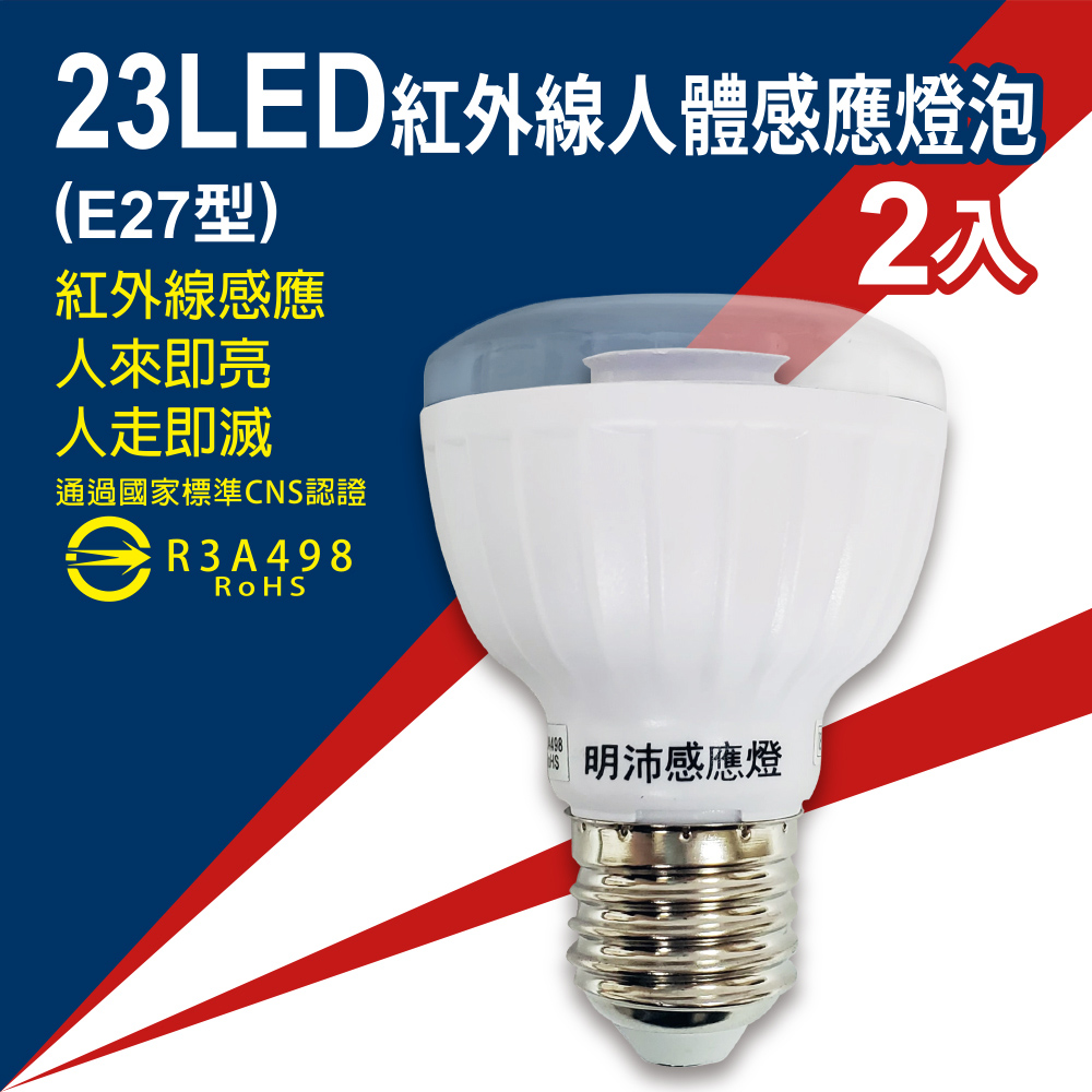 23LED紅外線人體感應燈泡(E27型)(白/黃光) 2入組-MP4312