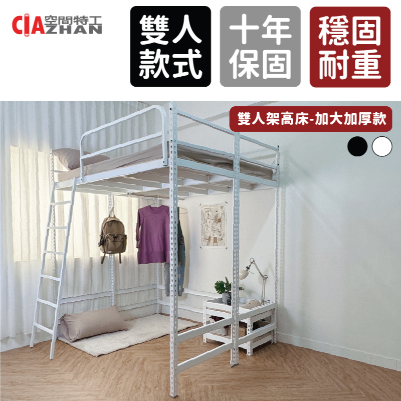 空間特工 雙人架高床_加大6尺_床板加厚/免螺絲角鋼床/高架床/高腳床/床架/樓梯床 組合床架 加高床架 高架床 鐵床