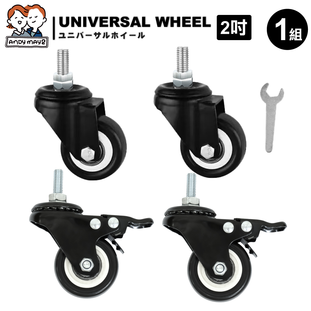 2吋PU輪組(萬向輪x2+煞車萬向輪x2)