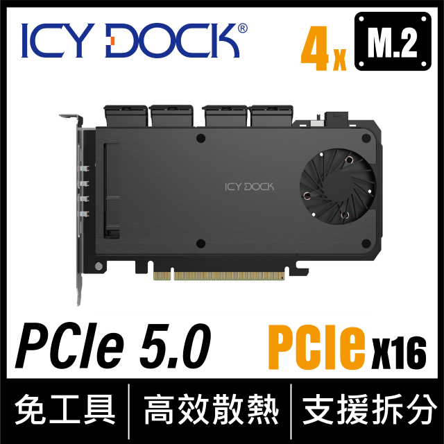 ICY DOCK 4層M.2轉 PCIe 5.0 x16 抽取式硬碟盒 PCIe擴充插槽專用 主機板需支援PCIe拆分功能 (MB204MP-B)