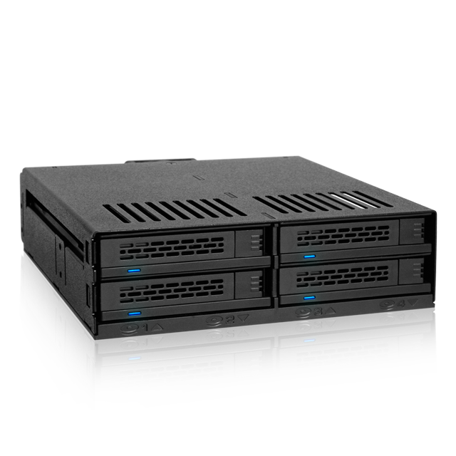 - 支援4 x 2.5吋 SATA/SAS HDD/SSD至單一5.25吋裝置空間