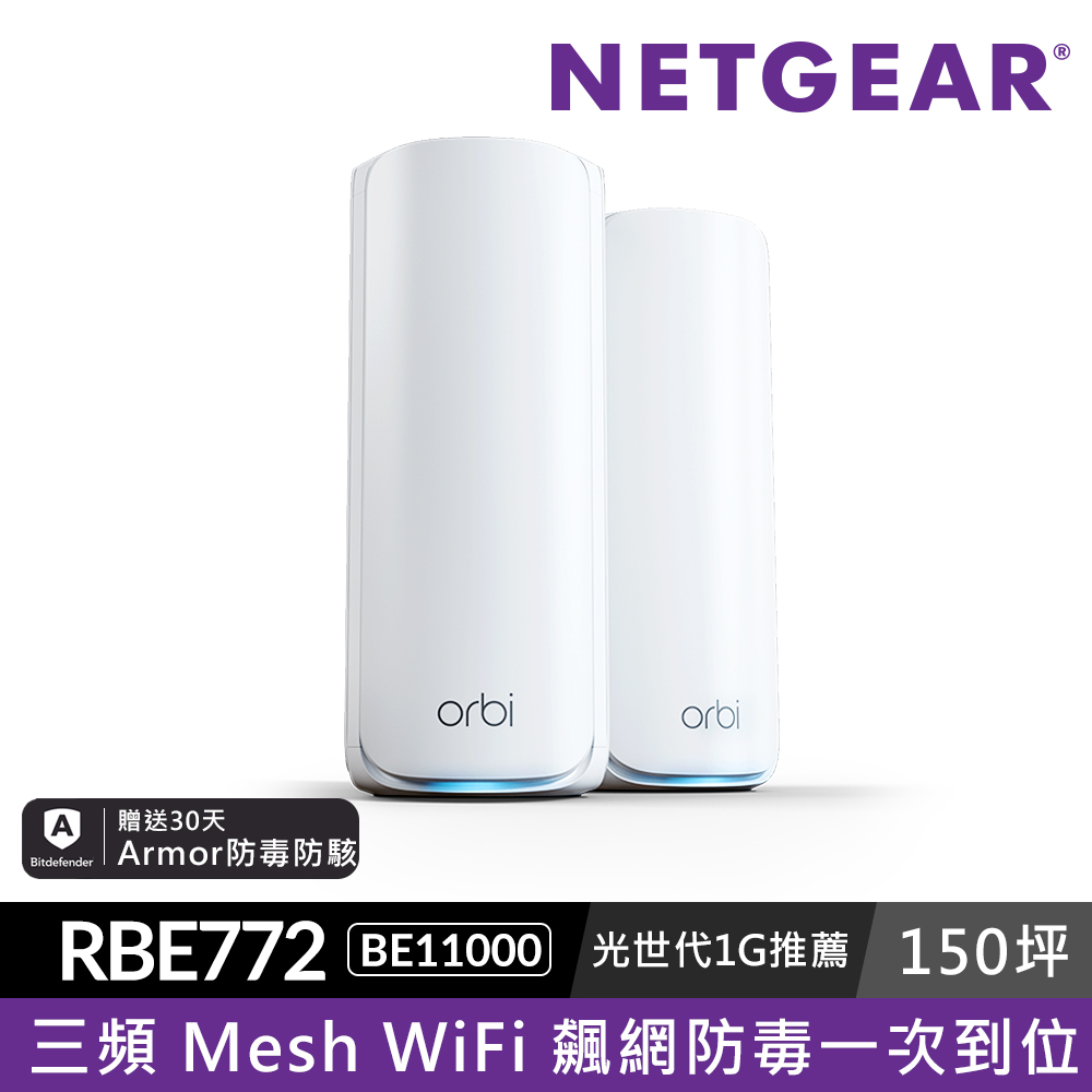• Orbi BE11000 路由器與延伸衛星套裝組 (5760 + 4320 + 688 Mbps)