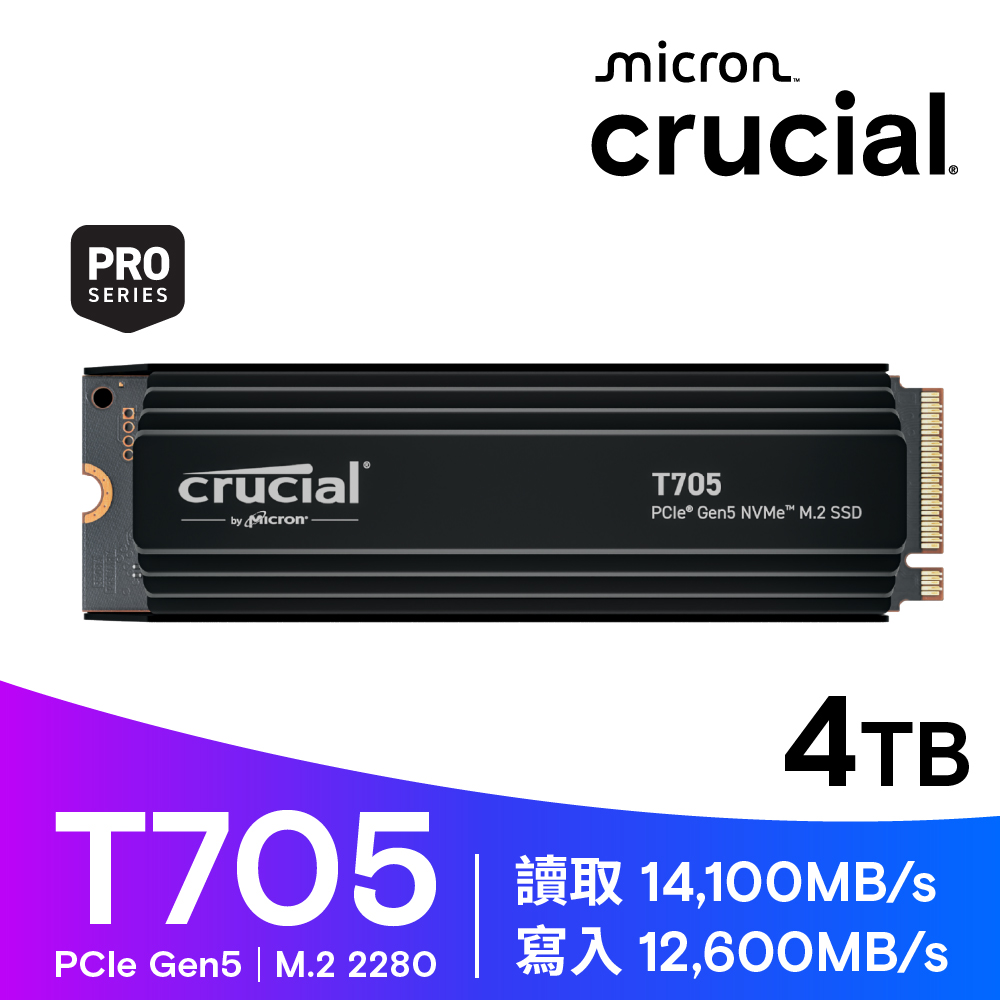 Micron 美光 Crucial T705 4TB PCIe Gen5 NVMe M.2 SSD (CT4000T705SSD3)