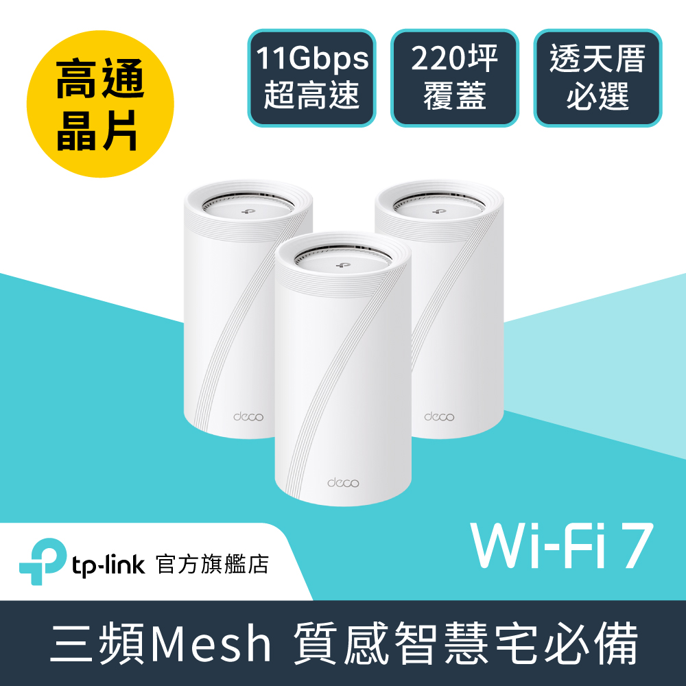 TP-Link Wi-Fi 7 BE11000 三頻全2.5G埠 Mesh 全屋網狀 無線路由器 wifi分享器(MOD/Deco BE65 三入組)
