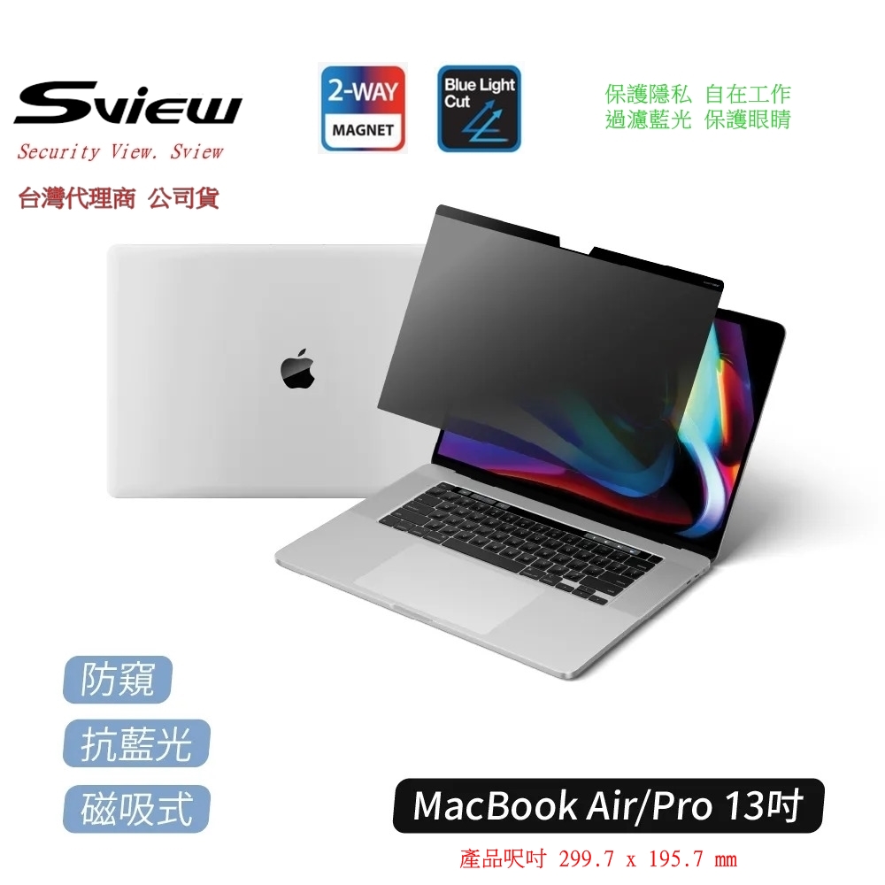 Sview Macbook Air/ Pro 13 吋系列 抗藍光 抗菌螢幕 防窺片(台灣公司貨 韓製原廠1年保固)