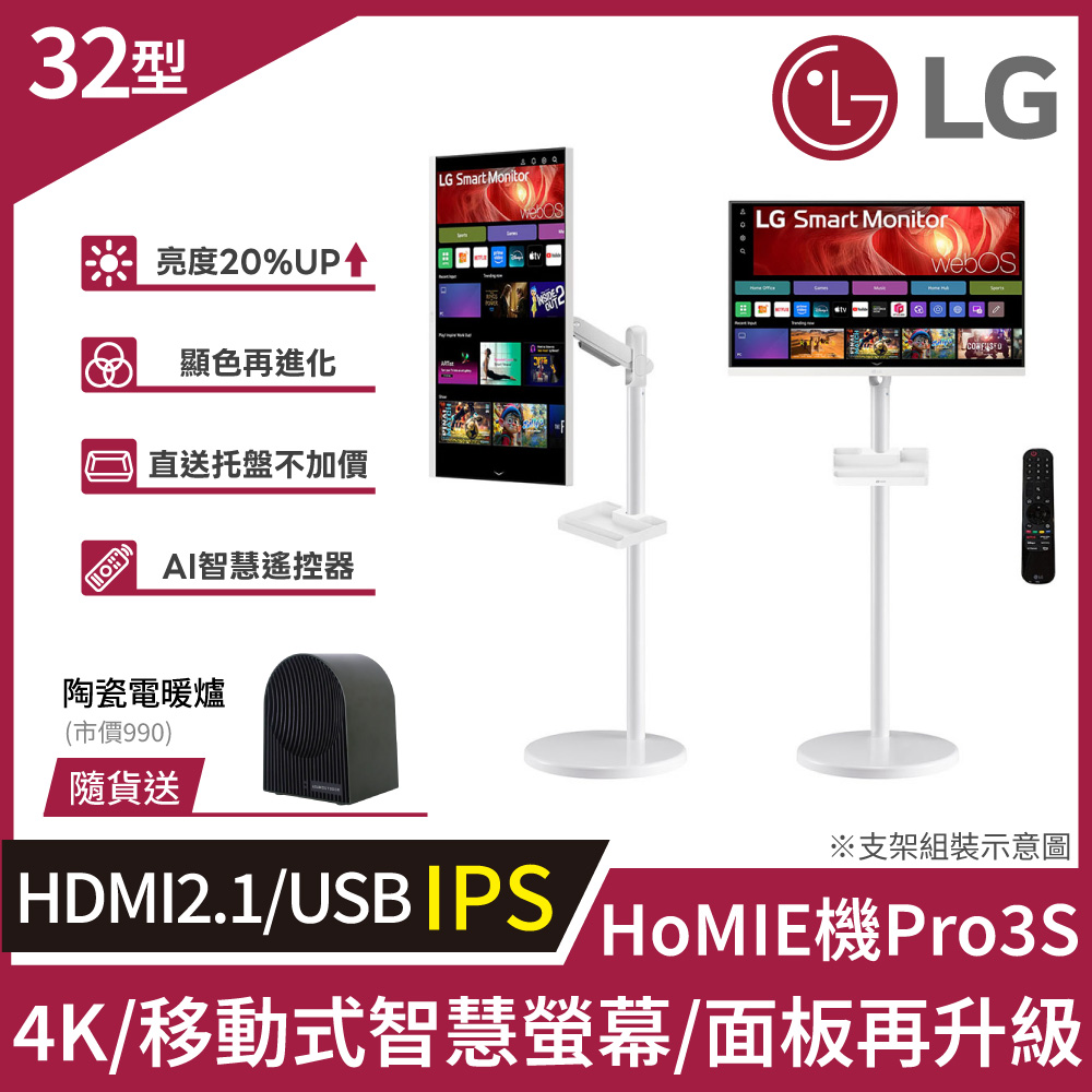 - ※此為限定通路組合 LG 32吋 IPS智慧聯網螢幕+移動式支架