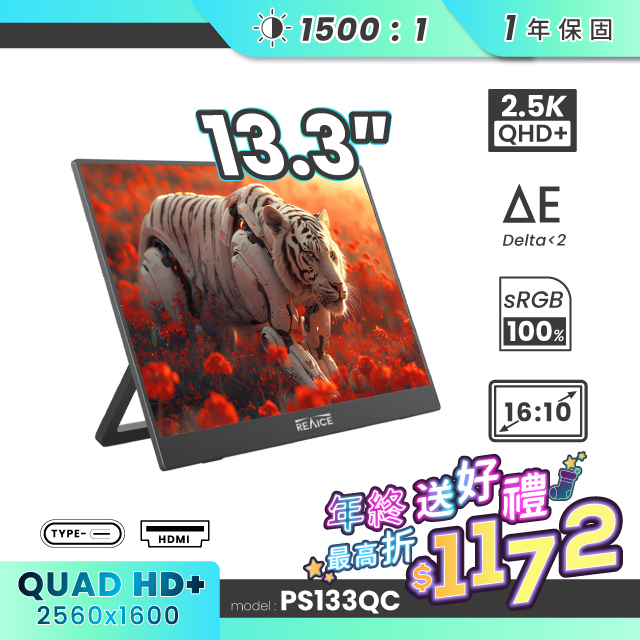 REAICE 13.3型2.5K升級版IPS超薄可攜式外接螢幕(Switch外接螢幕/Type-C/可攜式螢幕/攜帶式電腦螢幕)
