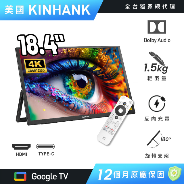 REAICE 美國Kinhank18.4型IPS可攜式/Google TV/外接螢幕(Switch可攜螢幕/移動式液晶顯示器/FHD/Type C/HDMI)