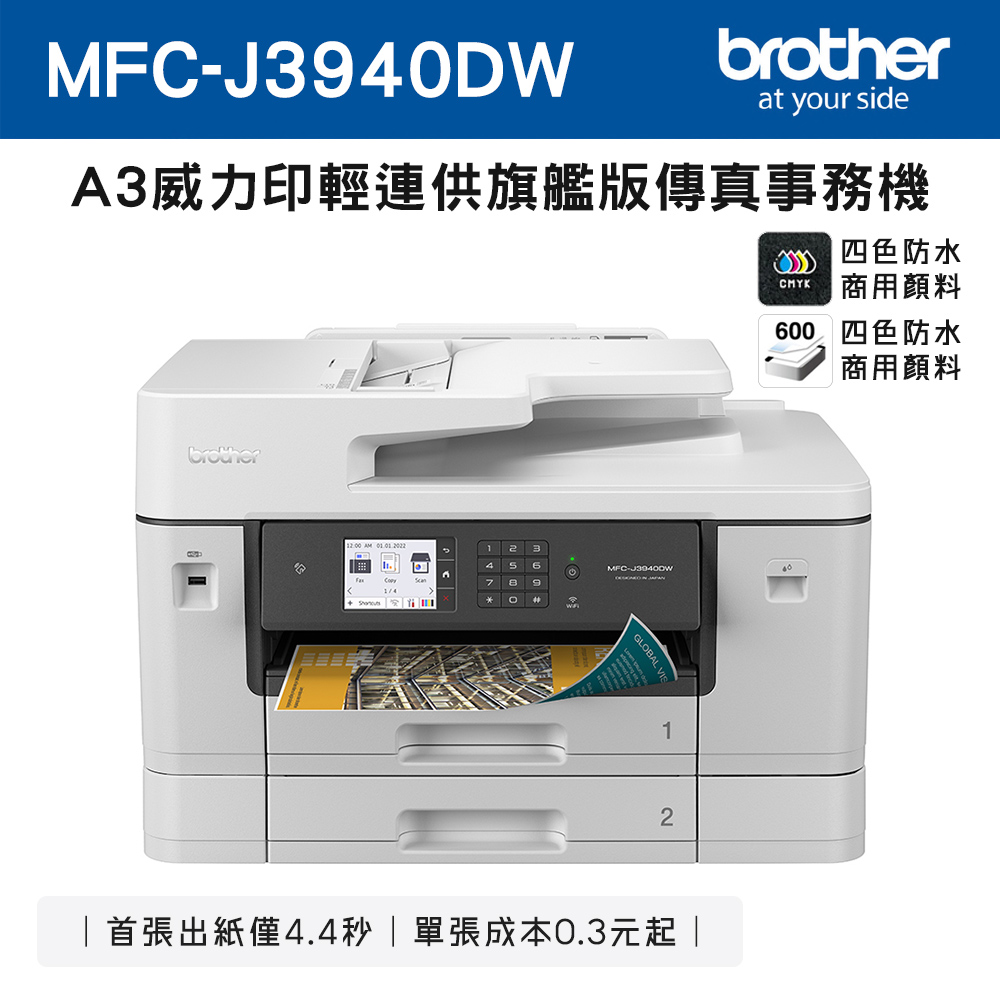 BROTHER 兄弟牌 MFC-J3940DW A3威力印輕連供旗艦版 雙紙匣商用網路傳真事務機(噴墨印表機/輕連續供墨/wifi/掃描/影印)
