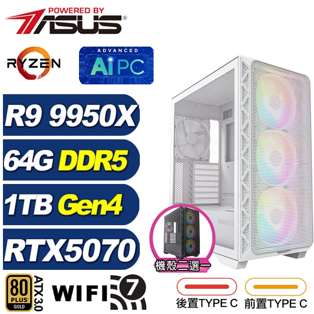 GeForce RTX 5070 - 華碩X870平台 R9十六核 電競電腦
