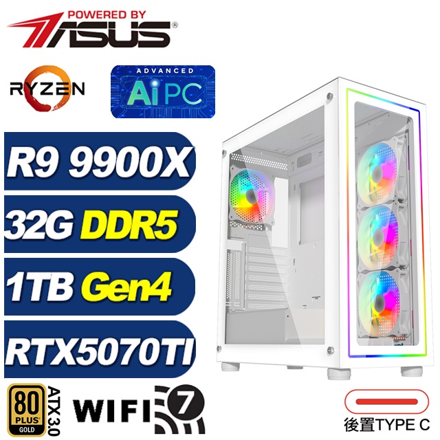 GeForce RTX 5070 TI - 華碩X870平台 R9十二核 電競電腦