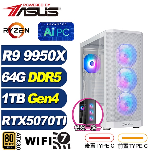 GeForce RTX 5070 TI - 華碩X870平台 R9十六核 電競電腦