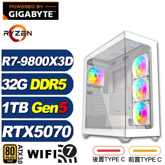 GIGABYTE 技嘉 (DIY)裝甲艦LE1C(R7 9800X3D/RTX 5070/X870/32G/1TB M.2/水冷)