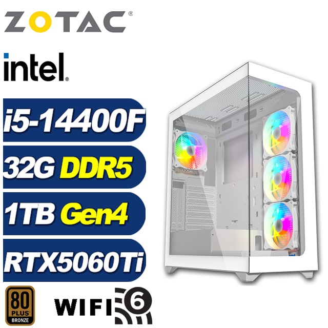 ZOTAC (DIY)叢鷹鴞K5BC(i5-14400F/華碩B760/32G/1TB M.2/RTX 5060 Ti)