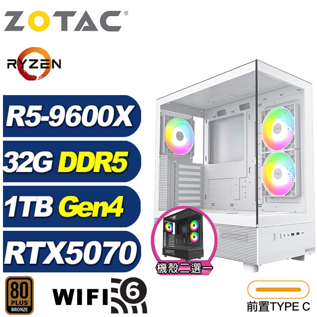 ZOTAC (DIY)叢鷹鴞L65C(R5 9600X/華碩B650/32G/1TB M.2/RTX 5070)
