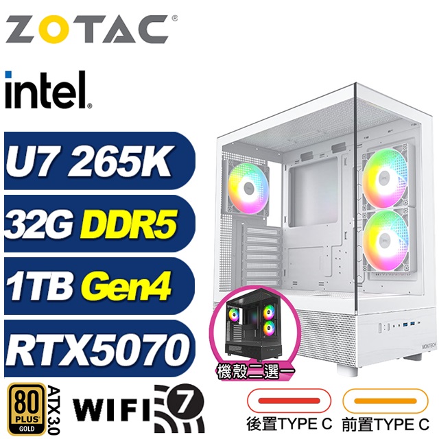 ZOTAC (DIY)阿米特LA6C(U7 265K/技嘉Z890/32G/1TB M.2/RTX 5070/水冷)