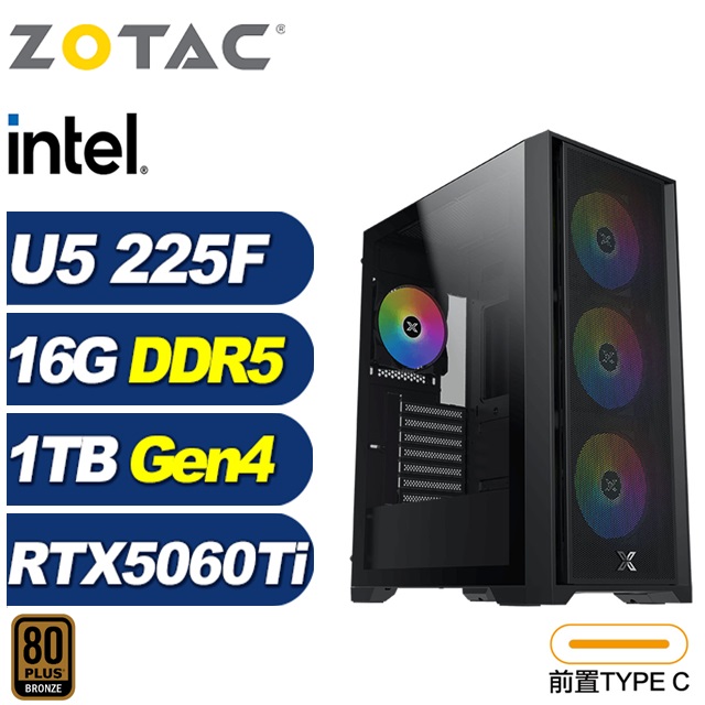 ZOTAC (DIY)光影K27C(Ultra 5 225F/RTX 5060 Ti/華碩B860/16G/1TB M.2)