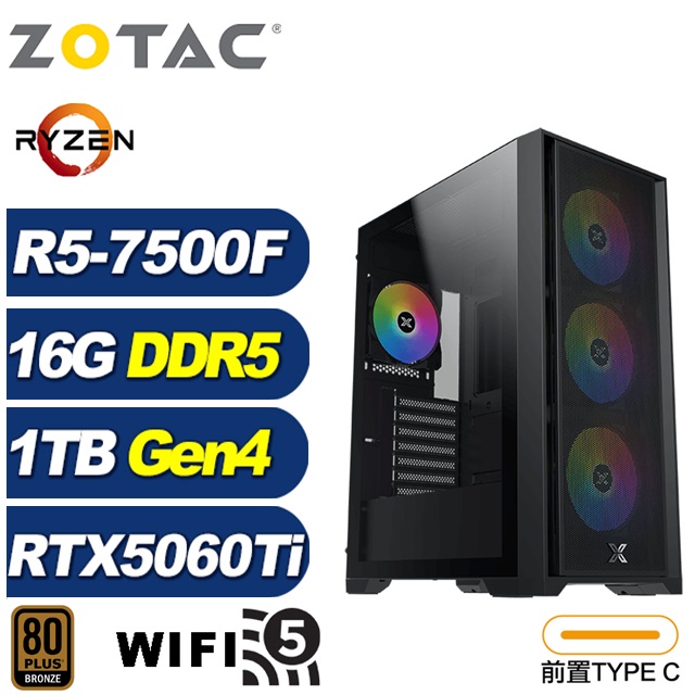 ZOTAC (DIY)光影K2BC(R5-7500F/RTX 5060 Ti/技嘉B650/16G/1TB M.2)