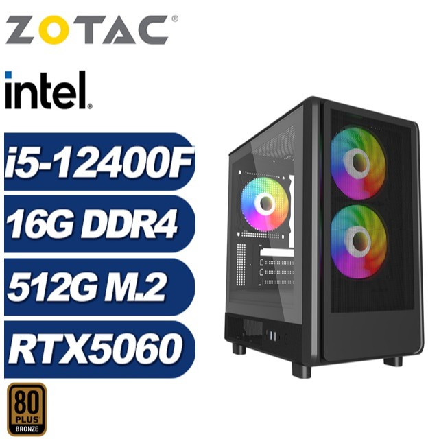 ZOTAC (DIY)榮耀K61B(i5-12400F/RTX 5060/技嘉H610/16G/512G M.2)