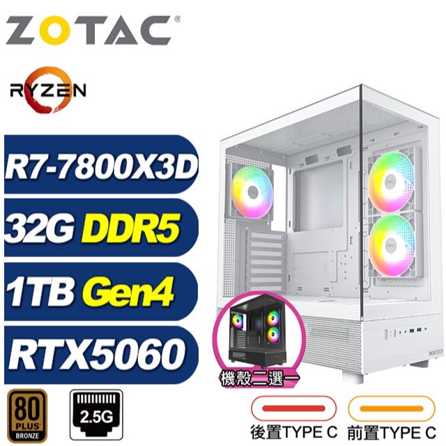 ZOTAC (DIY)深淵龍K6BC(R7-7800X3D/RTX 5060/華碩B840/32G/1TB M.2)