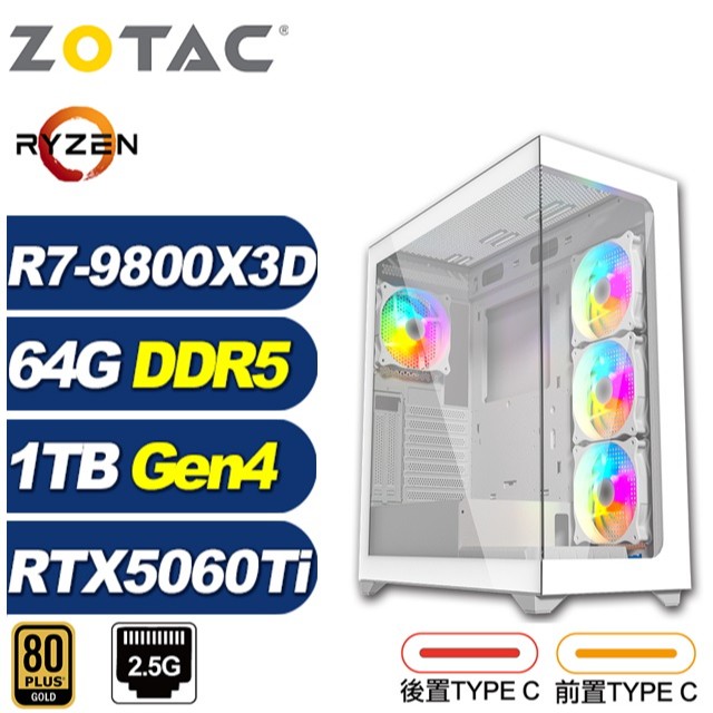 ZOTAC (DIY)深淵龍K7AC(R7 9800X3D/RTX 5060 Ti/華碩B840/64G/1TB M.2)
