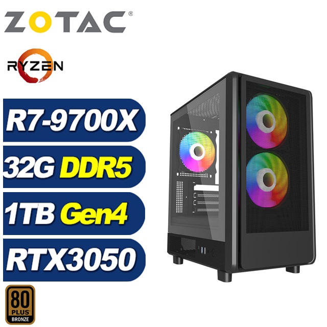 ZOTAC (DIY)突擊艦JB5C(R7 9700X/RTX 3050/技嘉A620/32G/1TB M.2)