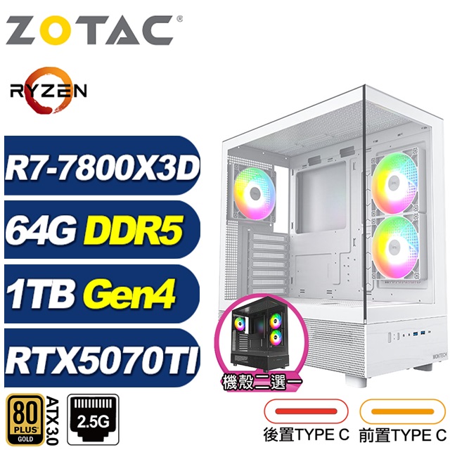 ZOTAC (DIY)炎妃龍L15C(R7-7800X3D/RTX 5070 TI/華碩B840/64G/1TB M.2)