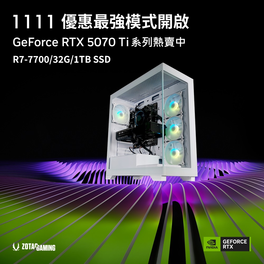 ZOTAC (DIY)炎妃龍L1CC(R7-7700/RTX 5070 TI/華碩B840/32G/1TB M.2)
