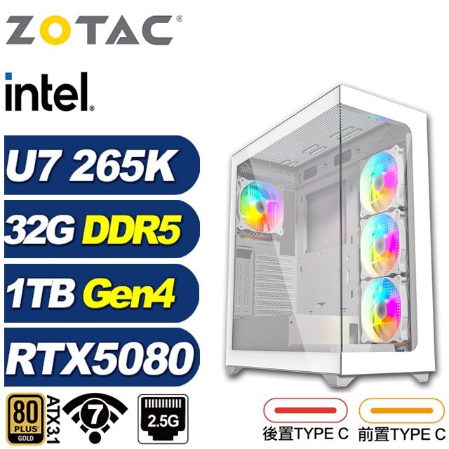 ZOTAC Z890平台(DIY)BHCP63J93(Ultra 7 265K/華碩Z890/RTX 5080/32G/1TB M.2/電競電腦)
