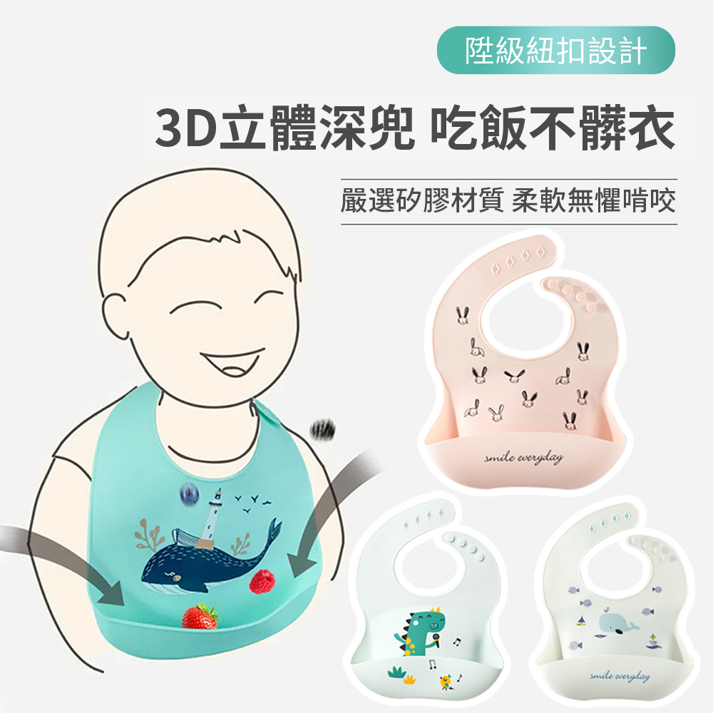 aiebao 寬口袋立體防水防漏矽膠圍兜 寶寶吃飯兜 (輔食餐具 寶寶餵食 嬰兒用品 口水圍兜 調節頸圍)