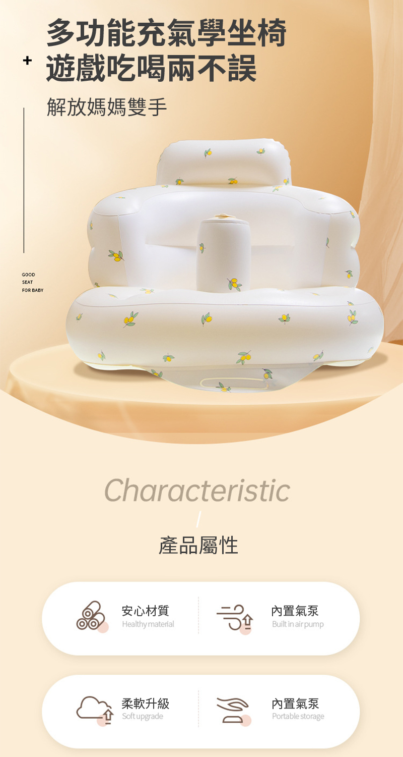 BASEE 多功能嬰兒學坐充氣沙發 寶寶學坐沙發座椅 幼童外出小沙發 孩童洗澡椅 練習坐訓練椅