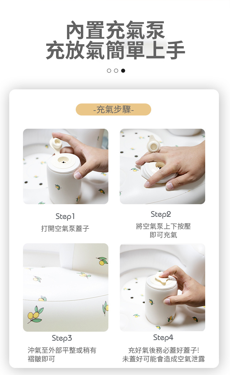 - 內置按壓氣泵,充氣放氣好上手