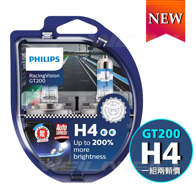 品名:PHILIPS RacingVision 競技光GT200 +200% H4大燈燈泡