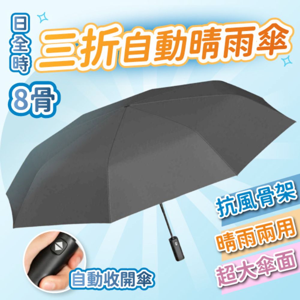日全時 三折自動晴雨傘(UPF50+ 抗風雨傘 防曬傘 自動傘 黑膠傘 折疊傘 雨傘 晴雨兩用傘 防風大傘面)