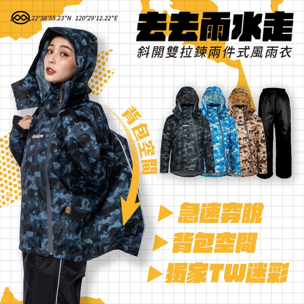 OutPerform 奧德蒙 -【背包款】去去雨水走斜開雙拉鍊兩件式