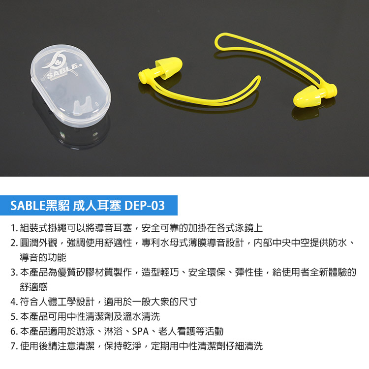 SABLE黑貂 成人耳塞 DEP-03 / 防護耳塞導音防水水母薄膜