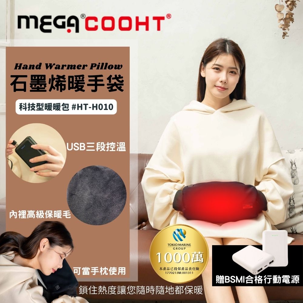 MEGA COOHT 石墨烯暖手袋 科技型暖暖包 HT-H010 附行動電源