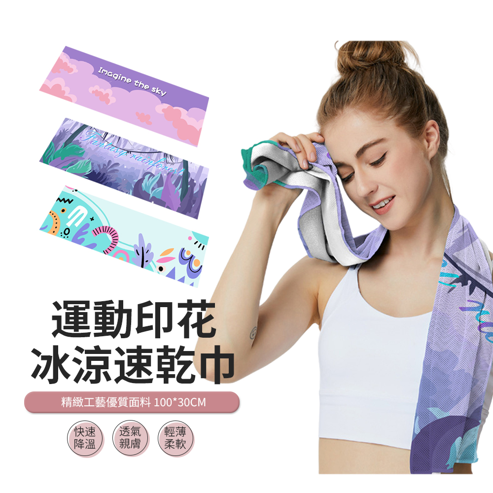 印花吸汗速乾冰涼巾 30*100cm 運動冷感毛巾 跑步健身涼感巾 擦汗巾 頭巾