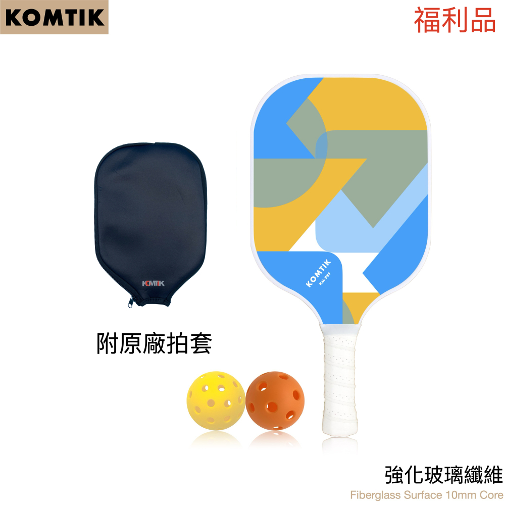 KOMTIK 玻璃纖維匹克球拍 10mm拍芯 型號 Blue KM-PBF - 1拍組 附拍套 (福利品)