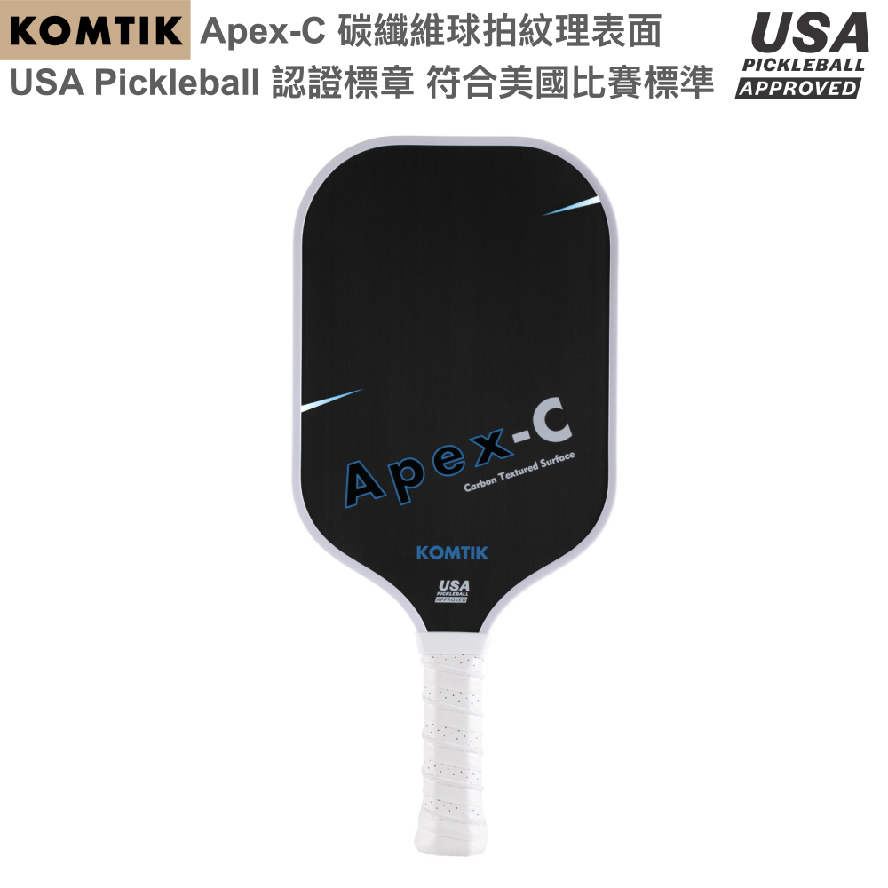 KOMTIK Apex-C 碳纖維匹克球拍 16mm拍芯 磨砂碳布碳纖維 USA Pickleball 認證標章 白色框 1拍